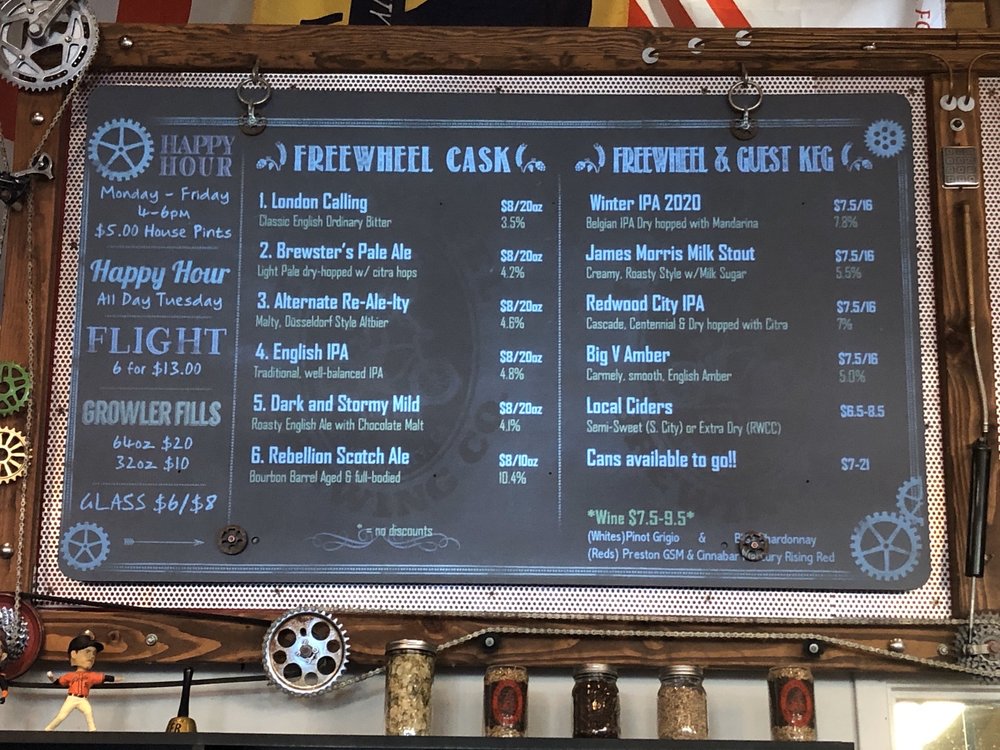 Freewheel Brewing Company in Redwood City, CA offers a diverse menu with options for burgers, small plates, entrees, salads, and more. From classic Black Bean Burgers to customizable Build A Burger options, there is something for every palate. The small plates like Avocado Toast and Bruschetta provide a tasty start to your meal. The entrees, such as the BLT Sandwich and Chicken Club Wrap, showcase fresh ingredients and bold flavors. Don't miss out on the refreshing salads like the Caesar Salad and Classic Salmon Salad. The restaurant also features unique amenities like outdoor seating, live music, and gender-neutral restrooms, creating a welcoming and inclusive atmosphere. Freewheel Brewing Company is a must-try destination for food lovers seeking a diverse and enjoyable dining experience.